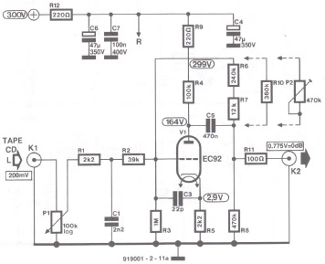 To most people working in electronics, the thermionic valve or electron tube is history. Indeed, few of us would be content nowadays without the ease of use, the technical quality, the low weight and the small dimensions of transistorized or integrated electronic equipment. None the less, for many hi-fi enthusiasts and musicians, a valve amplifier still forms the nucleus of their audio equipment. The combination of modern high-quality peripheral equipment (signal sources, loudspeakers) and a classical valve amplifier to come into their own as far as tonal quality is concerned. In modern hi-fi valve amplifiers much attention is paid to obtaining a signal transfer that is as nearly linear as possible. This obviates the need of complex tone control, which is the past were necessary to mask the deficiencies of signal sources then available. For instance, a CD player does not produce stylus noise which, when the audio was young, was combatted by chopping off the higher frequencies so as to obtain an acceptable sound quality (which modern listeners would not tolerate).