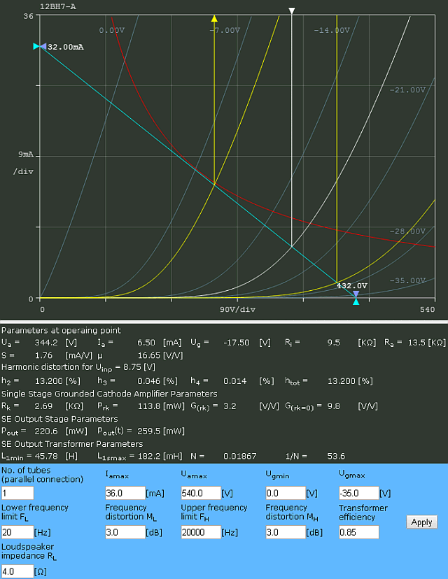 The program allows to determine the optimal operating point of a triode. It does not require installation and can be run by most web browsers. This is the first version of the program, which will be extended with new opportunities.