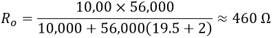 Sustituyendo un valor de 56.000 ohmios para RL, 10.000 ohmios para rp y 19,5 para él según corresponda para el tubo 6C4 empleado en este amplificador,