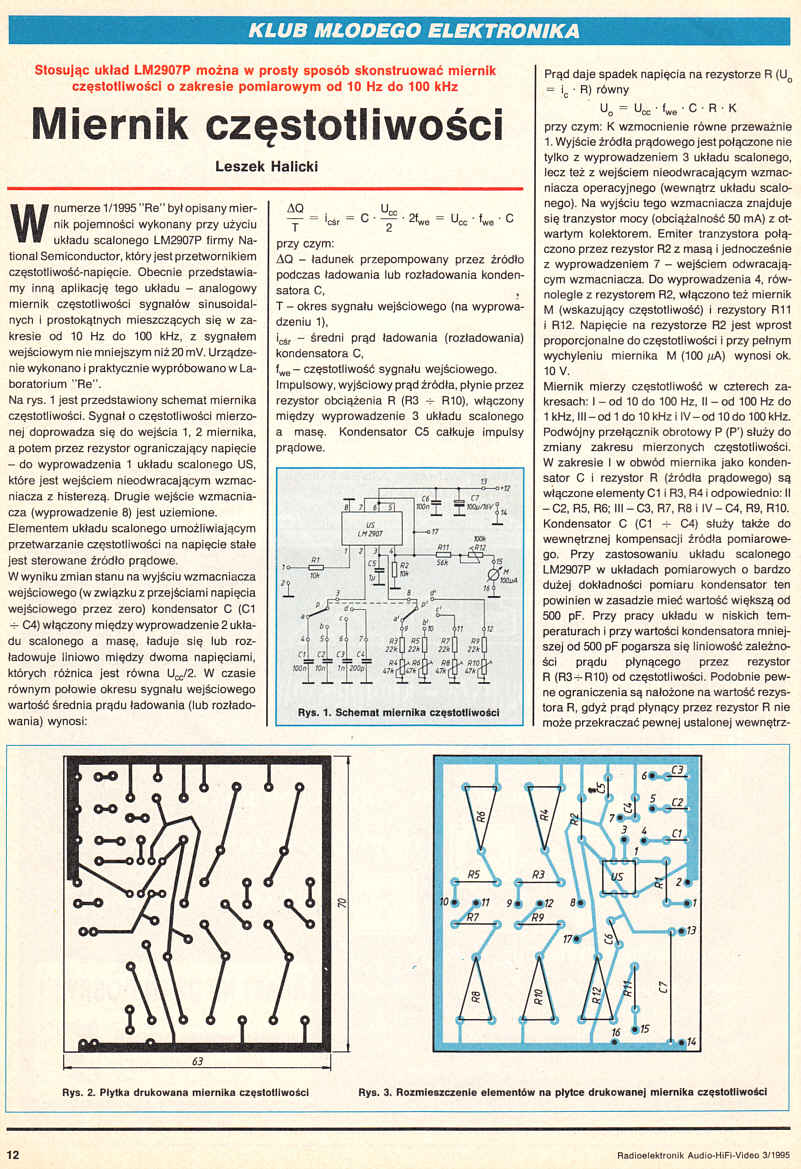 Stosując układ LM2907P można w prosty sposób skonstruować miernik częstotliwości o zakresie pomiarowym od 10Hz do 100kHz.