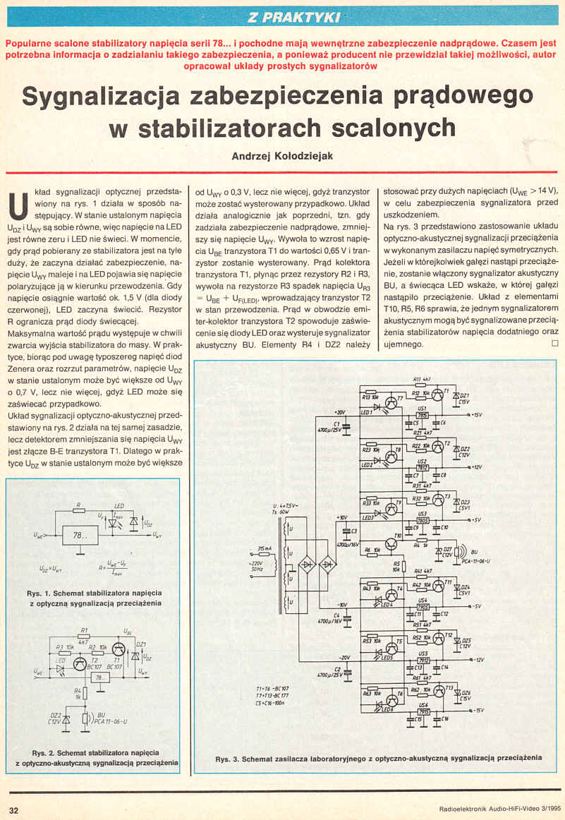 Popularne stabilizatory napięcia serii 78... i pochodne mają wewnętrzne zabezpieczenie nadprądowe. Czasem jest potrzebna informacja o zadziałaniu takiego zabezpieczenia, a ponieważ producent nie przewidział takiej możliwości, autor opracował układy prostych sygnalizatorów.