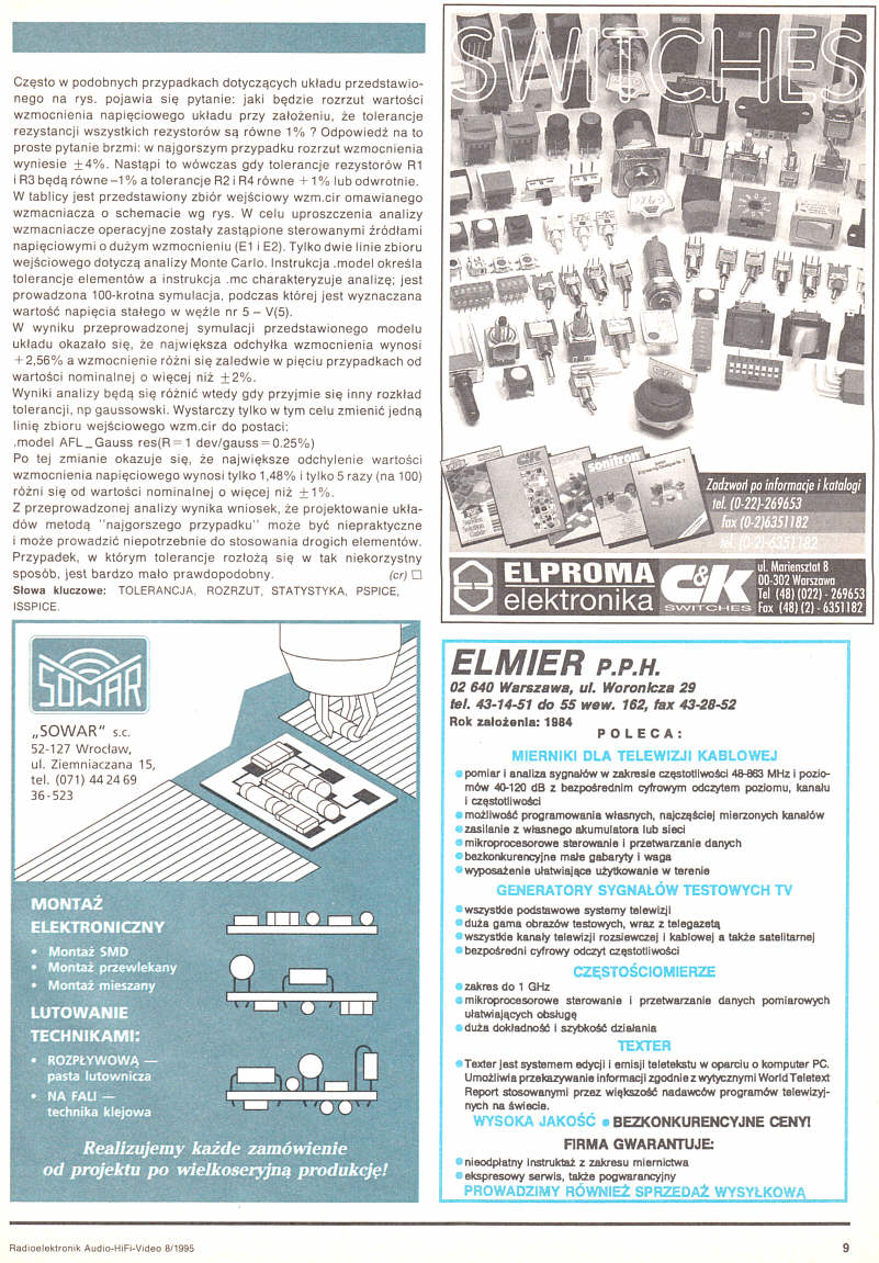 Radioelektronik Audio HiFi Video, sierpień, rocznik XLVII (195), 8'95