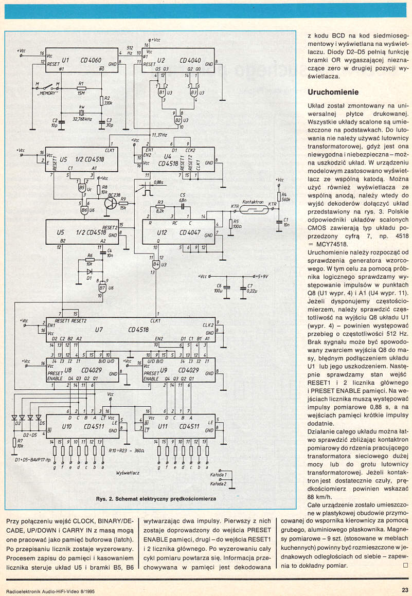 Układ umożliwia zmierzenie prędkości jazdy rowerem w zakresie 0÷99 km/h. Dodatkową funkcją jest wyświetlenie maksymalnej prędkości również po zatrzymaniu roweru. Urządzenie zostało wykorzystane w rowerze o średnicy kół 70cm.