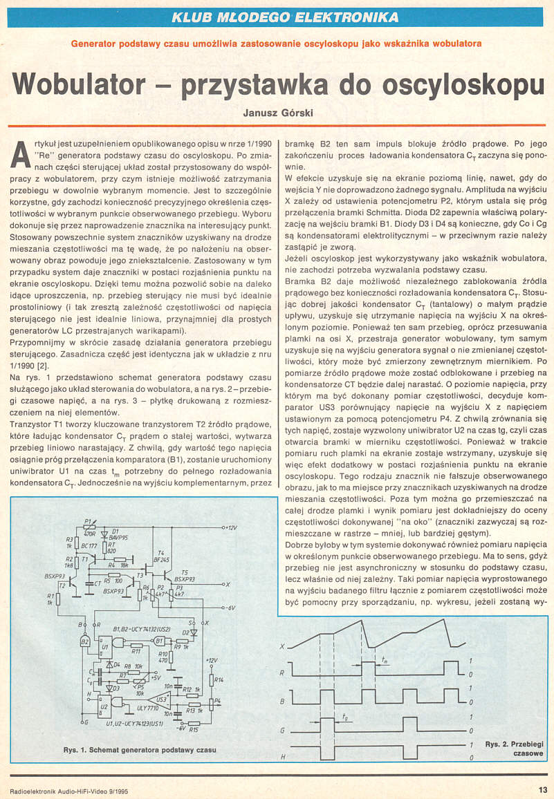 Generator podstawy czasu umożliwia zastosowanie oscyloskopu jako wskaźnika wobulatora.