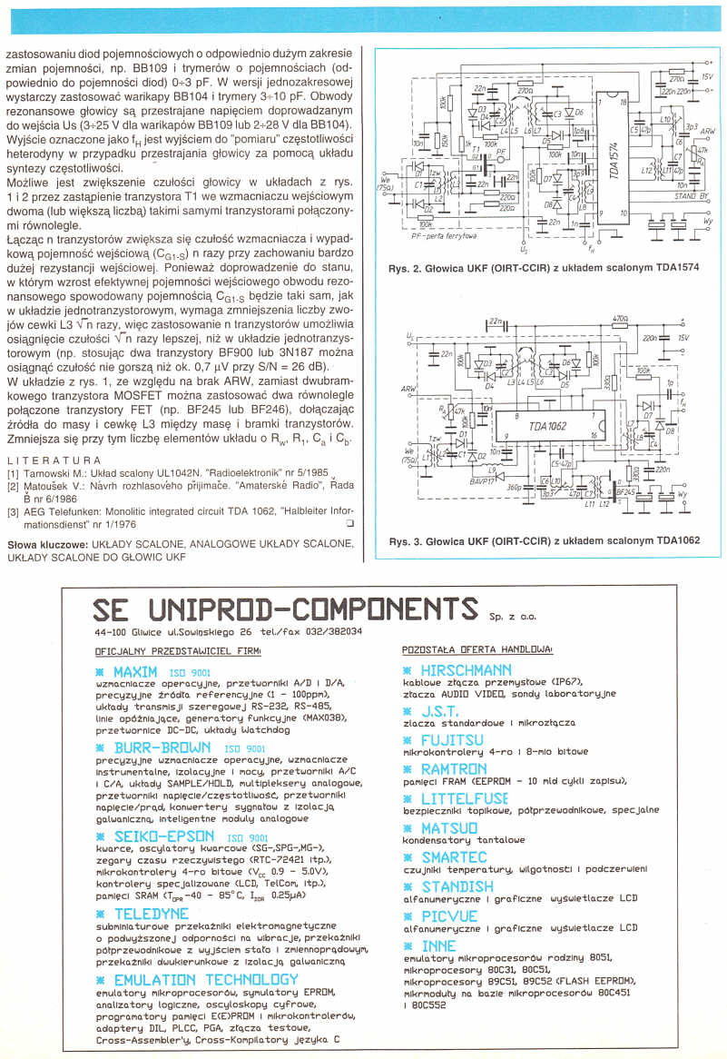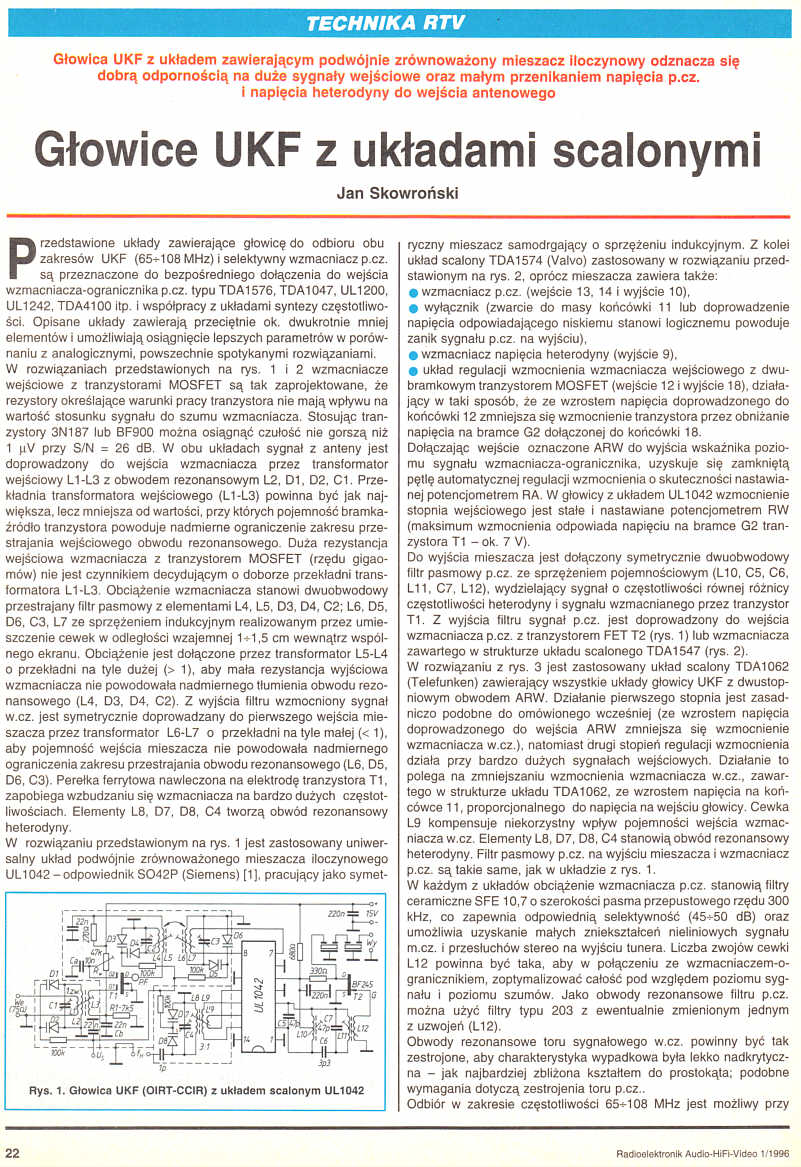 Głowica UKF z układem zawierającym podwójnie zrównoważony mieszacz iloczynowy odznacza się dobrą odpornością na duże sygnały wejściowe oraz małym przenikaniem napięcia p.cz i napięcia heterodyny do wejścia antenowego.