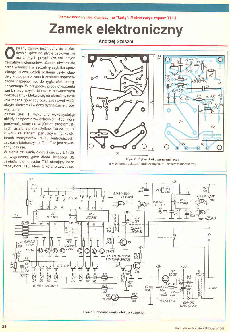 Zamek kodowy bez klawiszy, na "kartę". Można zużyć zapasy TTL-i.