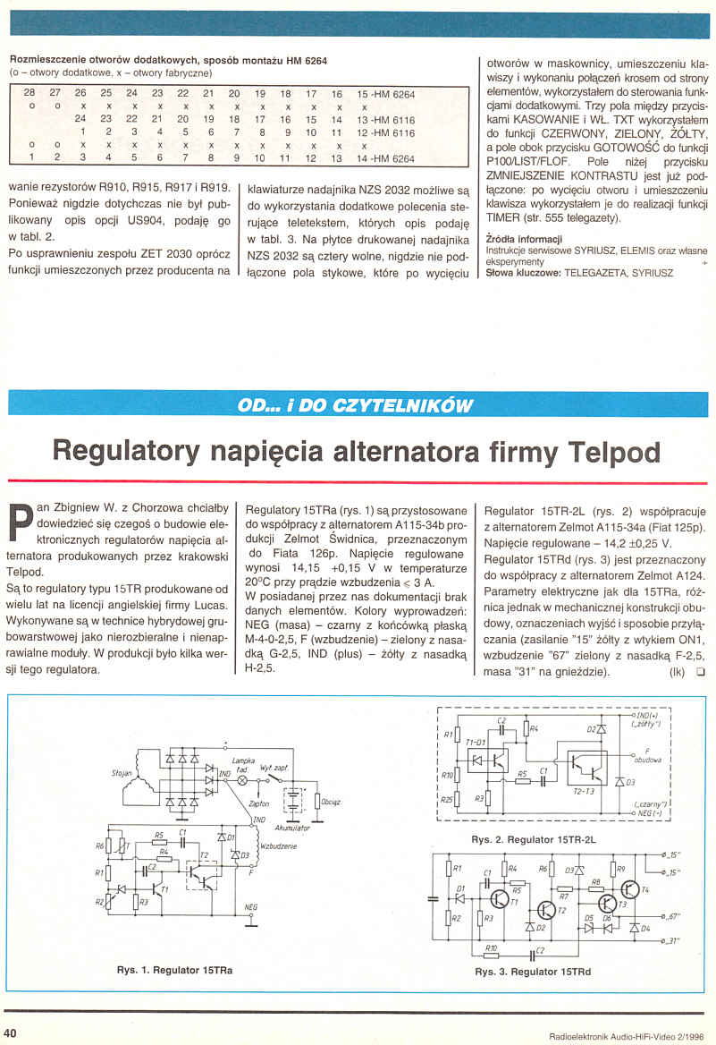 Telewizory Syriusz 504, 505 są wyposażone fabrycznie w teletekst jednostronicowy. Można jednak w bardzo prosty sposób rozszerzyć pamięć do czterech stron. Niewielkie koszty oraz znaczne ułatwienie dostępu do wybranych stron sprawiają, ze warto to zrobić. - OD... i DO CZYTELNIKÓW