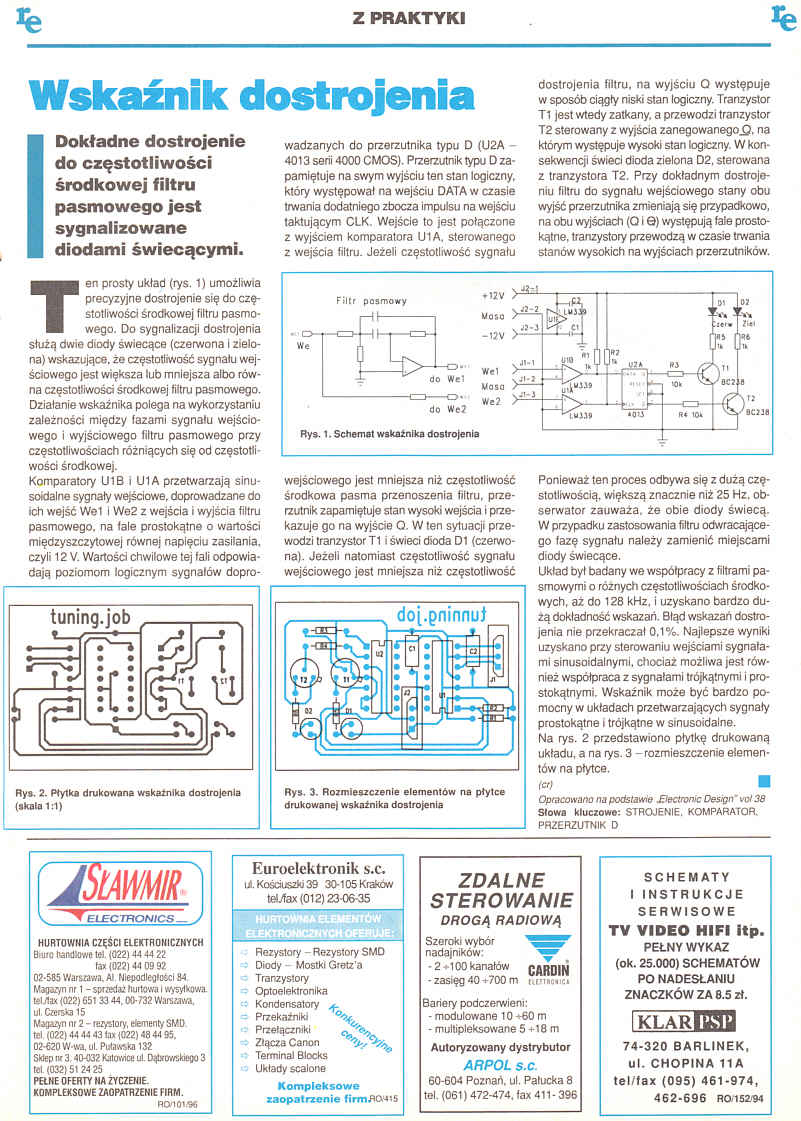 Dokładne dostrojenie do częstotliwości środkowej filtru pasmowego jest sygnalizowane diodami świecącymi.