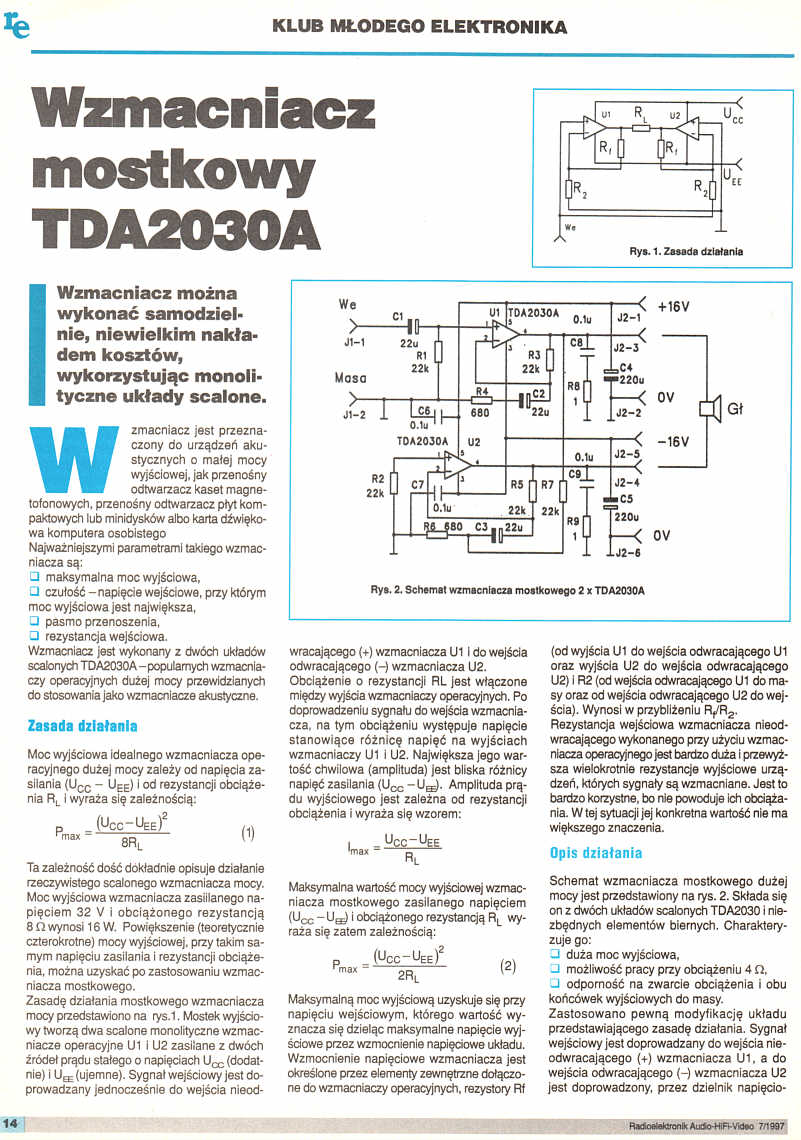 Wzmacniacz można wykonać samodzielnie, niewielkim nakładem kosztów, wykorzystując monolityczne układy scalone.