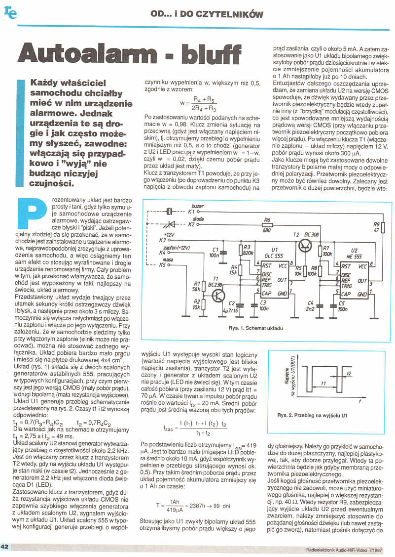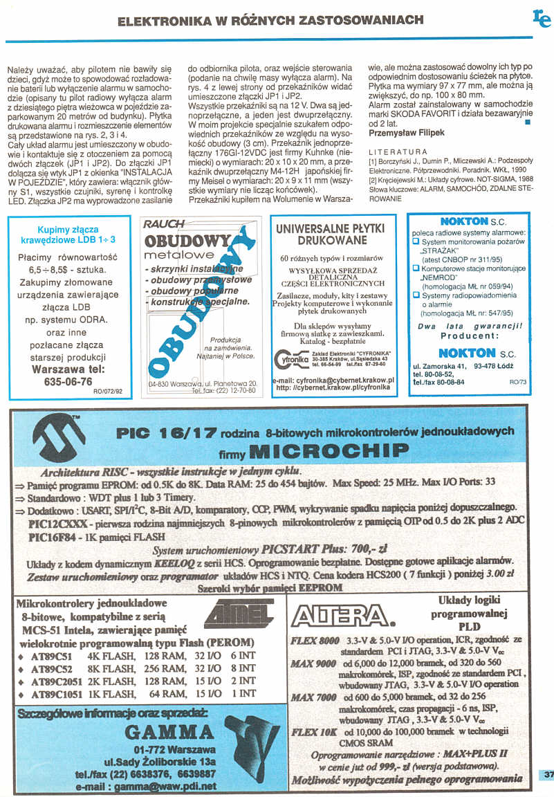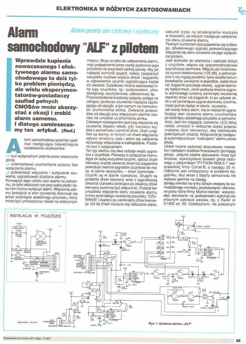 Wprawdzie kupienie nowoczesnego i efektywnego alarmu samochodowego to dziś tylko problem pieniędzy, ale wielu eksperymentatorów-posiadaczy szuflad pełnych CMOSów może skorzystać z okazji i zrobić alarm samemu. I dlatego zamieszczamy ten artykuł.