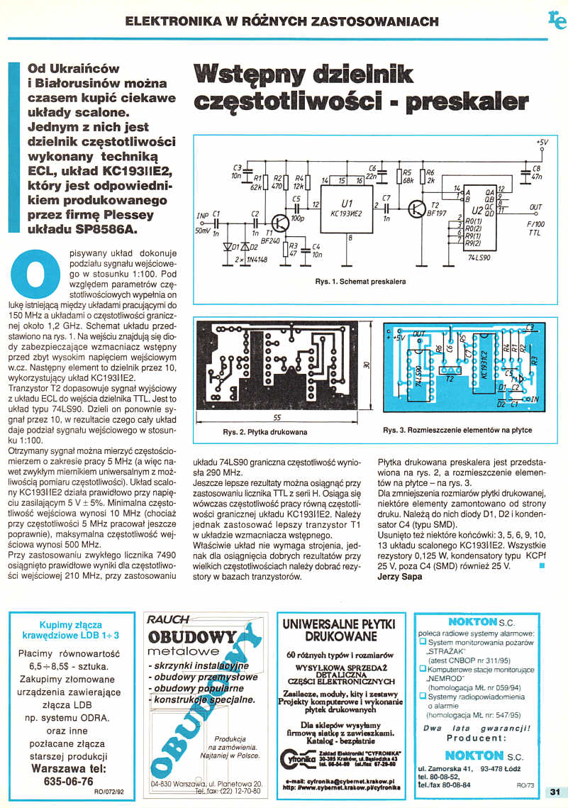Od Ukraińców i Białorusinów można czasem kupić ciekawe układy scalone. Jednym z nich jest dzielnik częstotliwości wykonany techniką ECL, układ KC193IE2, który jest odpowiednikiem produkowanego przez firmę Plessey układu SP8586A.