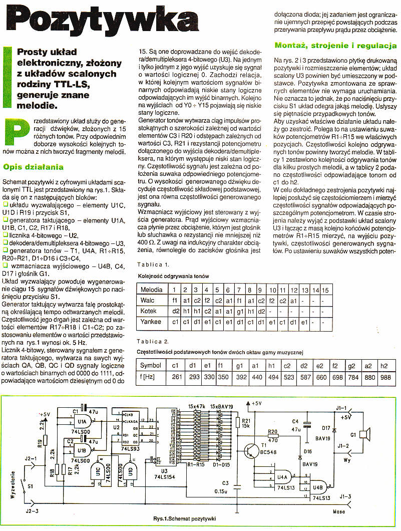 Prosty układ elektroniczny, złożony z układów scalonych rodziny TTL-LS, generuje znane melodie.