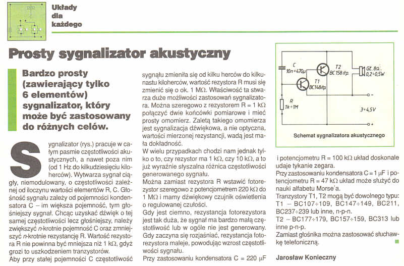 Bardzo prosty (zawierający tylko 6 elementów) sygnalizator, który może być zastosowany do różnych celów.