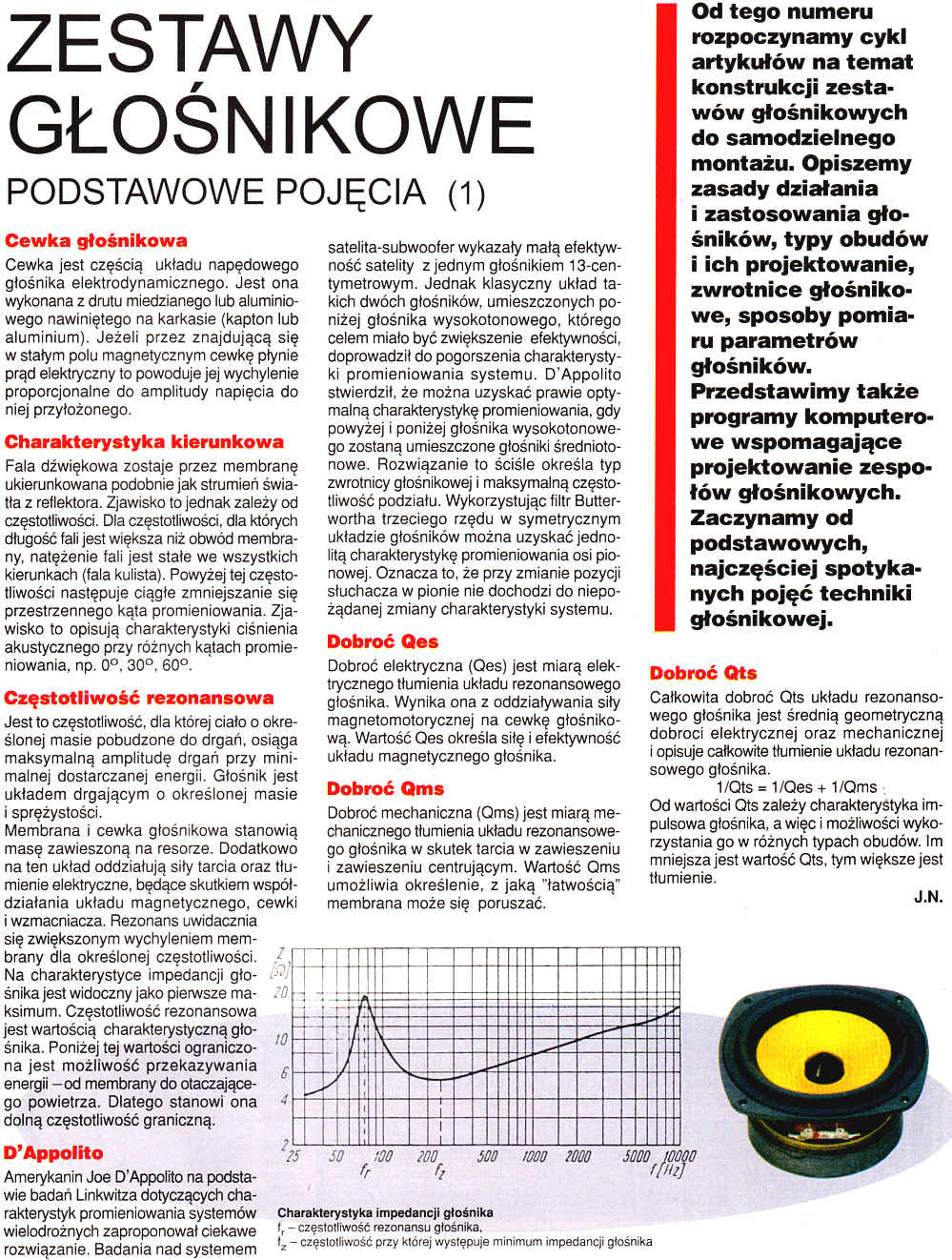 Od tego numeru rozpoczynamy cykl artykułów na temat konstrukcji zestawów głośnikowych do samodzielnego montażu. Opiszemy zasady działania i zastosowania głośników, typy obudów i ich projektowanie, zwrotnice głośnikowe, sposoby pomiaru parametrów głośników.