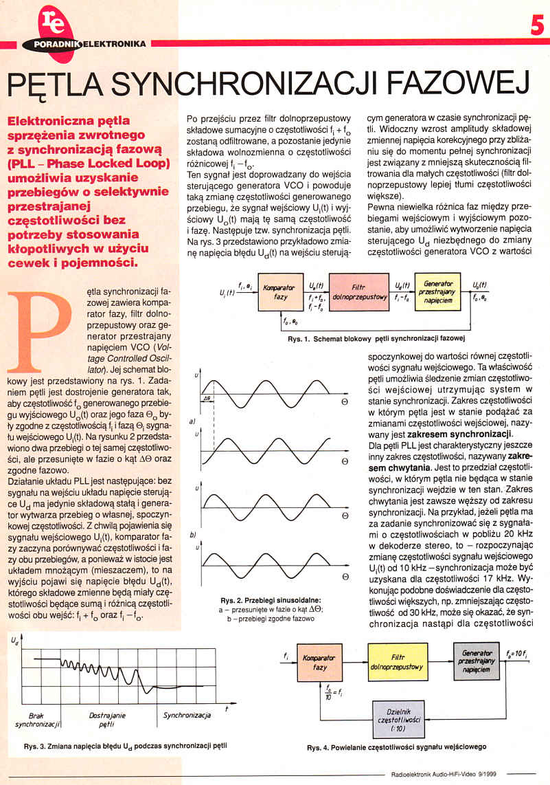 Elektroniczna pętla sprzężenia zwrotnego z synchronizacją fazową (PLL - Phase Locked Loop) umożliwia uzyskanie przebiegów o selektywnie przestrajanej częstotliwości bez potrzeby stosowania kłopotliwych w użyciu cewek i pojemności.