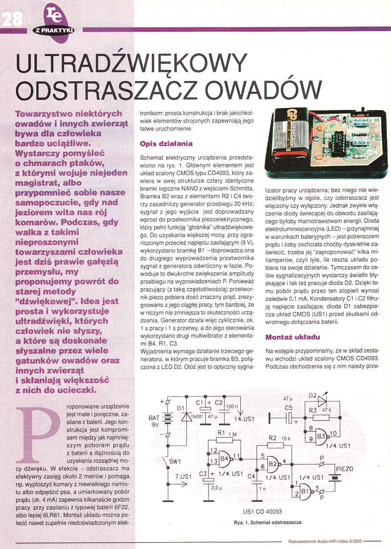 Towarzystwo niektórych owadów i innych zwierząt bywa dla człowieka bardzo uciążliwe. Wystarczy pomyśleć o chmarach ptaków, z którymi wojuje niejeden magistrat, albo przypomnieć sobie nasze samopoczucie, gdy nad jeziorem wita nas rój komarów. Podczas, gdy walka z takimi nieproszonymi towarzyszami człowieka jest dziś prawie gałęzią przemysłu, my proponujemy powrót do starej metody "dźwiękowej". Idea jest prosta i wykorzystuje ultradźwięki, których człowiek nie słyszy, a które są doskonale słyszalne przez wiele gatunków owadów oraz innych zwierząt i skłaniają większość z nich do ucieczki.