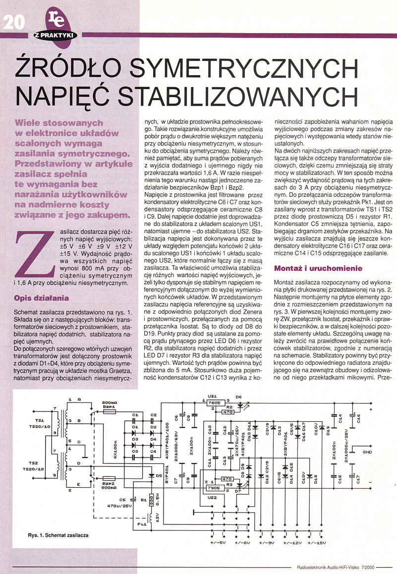 Wiele stosowanych w elektronice układów scalonych wymaga zasilania symetrycznego. Przedstawiony w artykule zasilacz spełnia te wymagania bez narażania użytkowników na nadmierne koszty związane z jego zakupem.