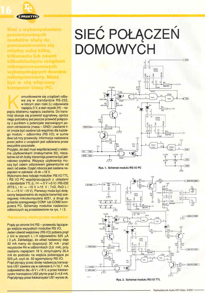 Sieć z wykorzystaniem prezentowanych modułów służy do porozumiewania się miedzy sobą kilku, kilkunastu lub nawet kilkudziesięciu urządzeń mikroprocesorowych wykorzystujących dowolne mikroprocesory. Może być w nią włączony komputer klasy PC.