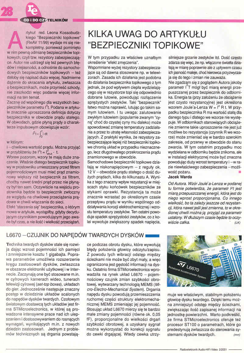 Artykuł: [Strona 26] - Kilka uwag do artykułu "Bezpieczniki topikowe" (28)