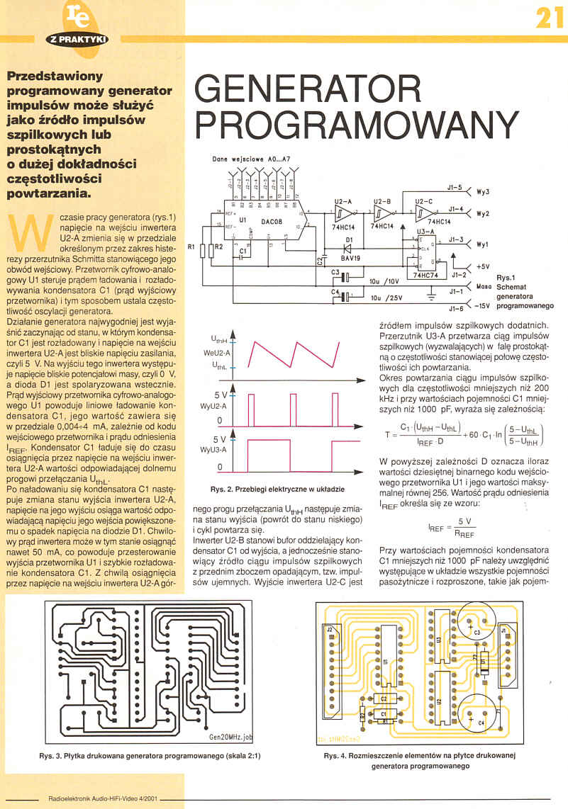 Przedstawiony programowany generator impulsów może służyć jako źródło impulsów szpilkowych lub prostokątnych o dużej dokładności częstotliwości powtarzania.