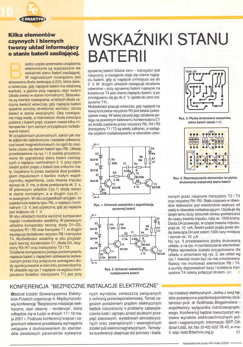Kilka elementów czynnych i biernych tworzy układ informujący o stanie baterii zasilającej.