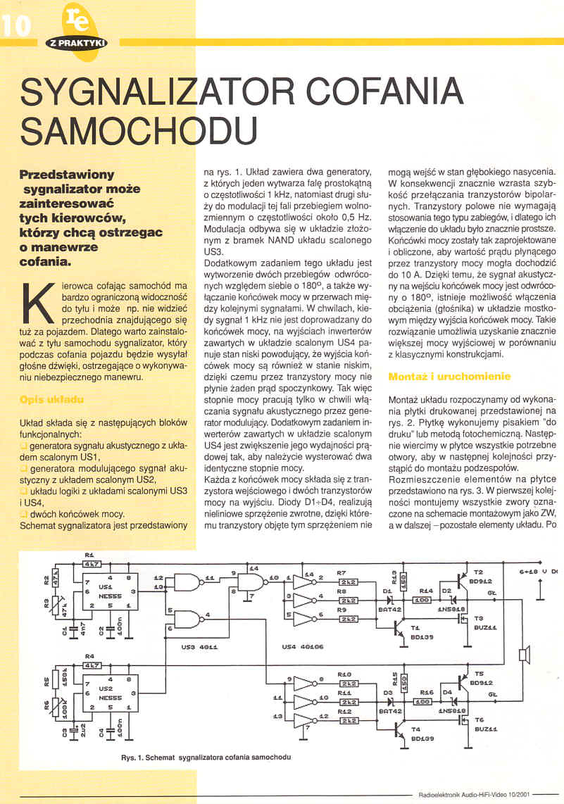 Przedstawiony sygnalizator może zainteresować tych kierowców, którzy chcą ostrzegać o manewrze cofania.