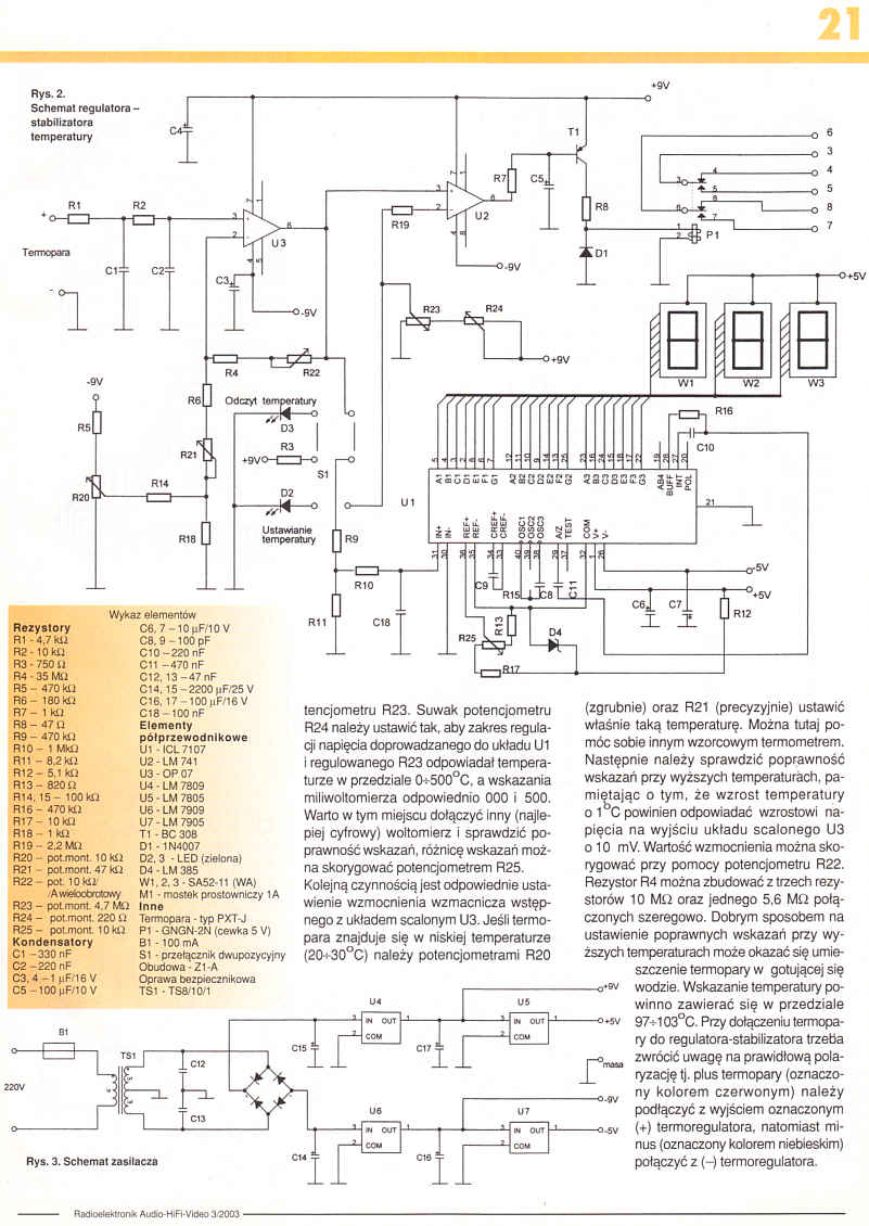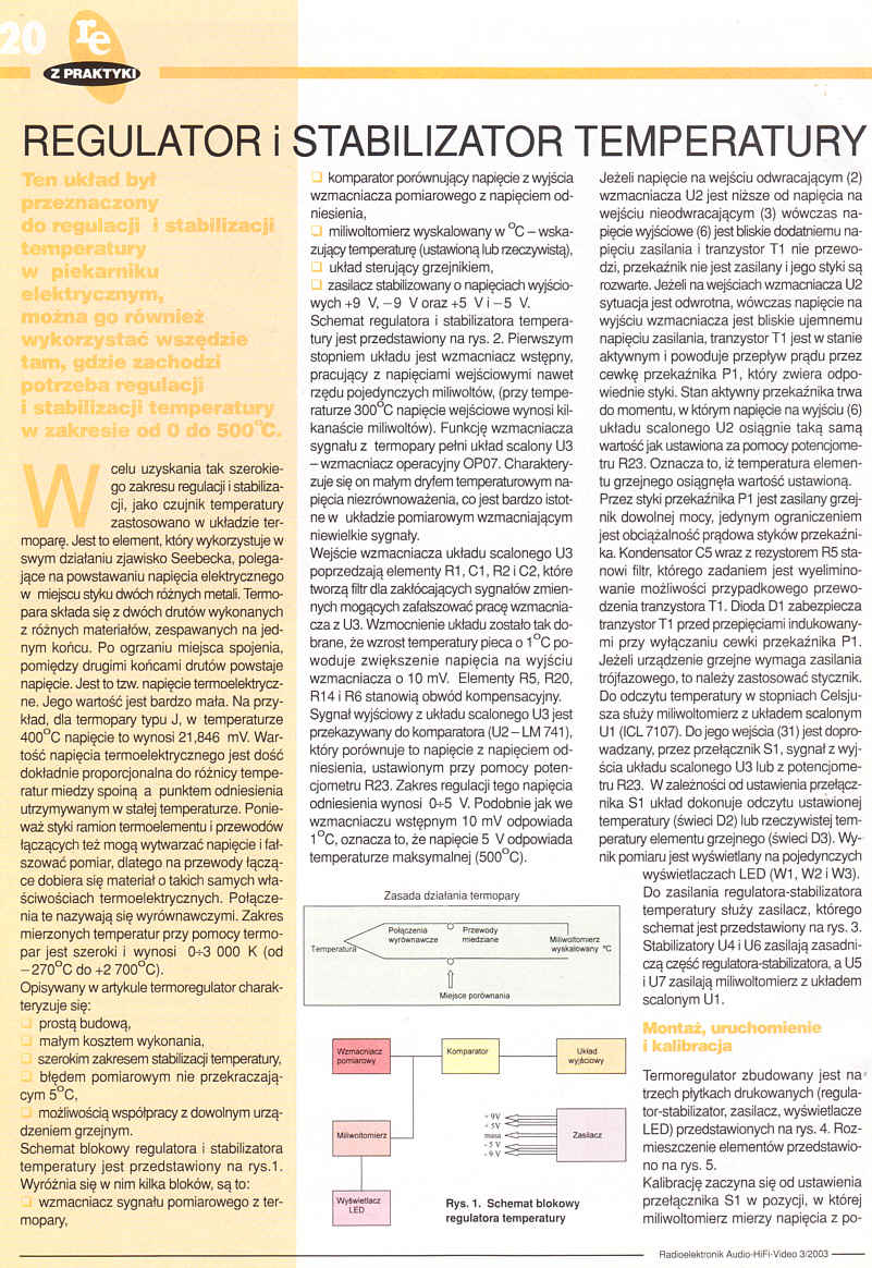 Ten układ był przeznaczony do regulacji i stabilizacji temperatury w piekarniku elektrycznym, można go również wykorzystać wszędzie tam, gdzie zachodzi potrzeba regulacji i stabilizacji temperatury w zakresie od 0 do 500oC.