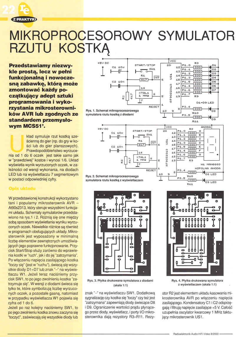 - Mikroprocesorowy symulator rzutu kostką (22)