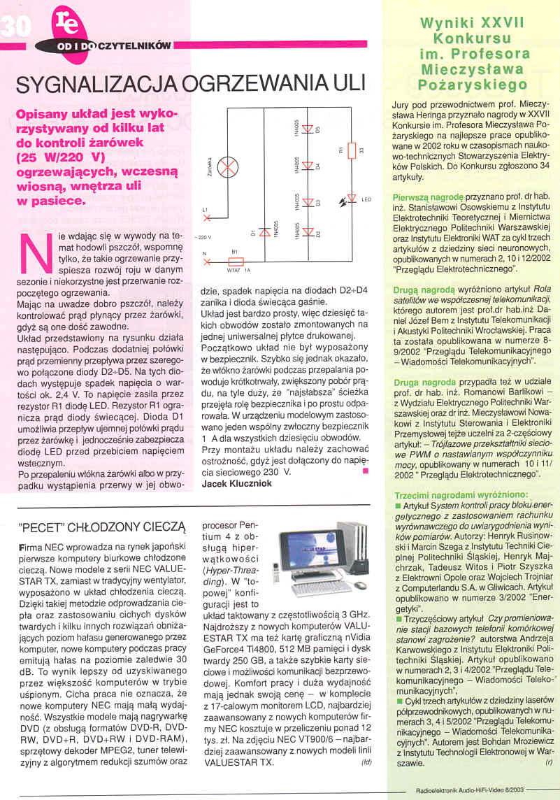 Opisywany układ jest wykorzystywany od kilku lat do kontroli żarówek (25W/220V) ogrzewających, wczesną wiosną, wnętrza uli w pasiece.