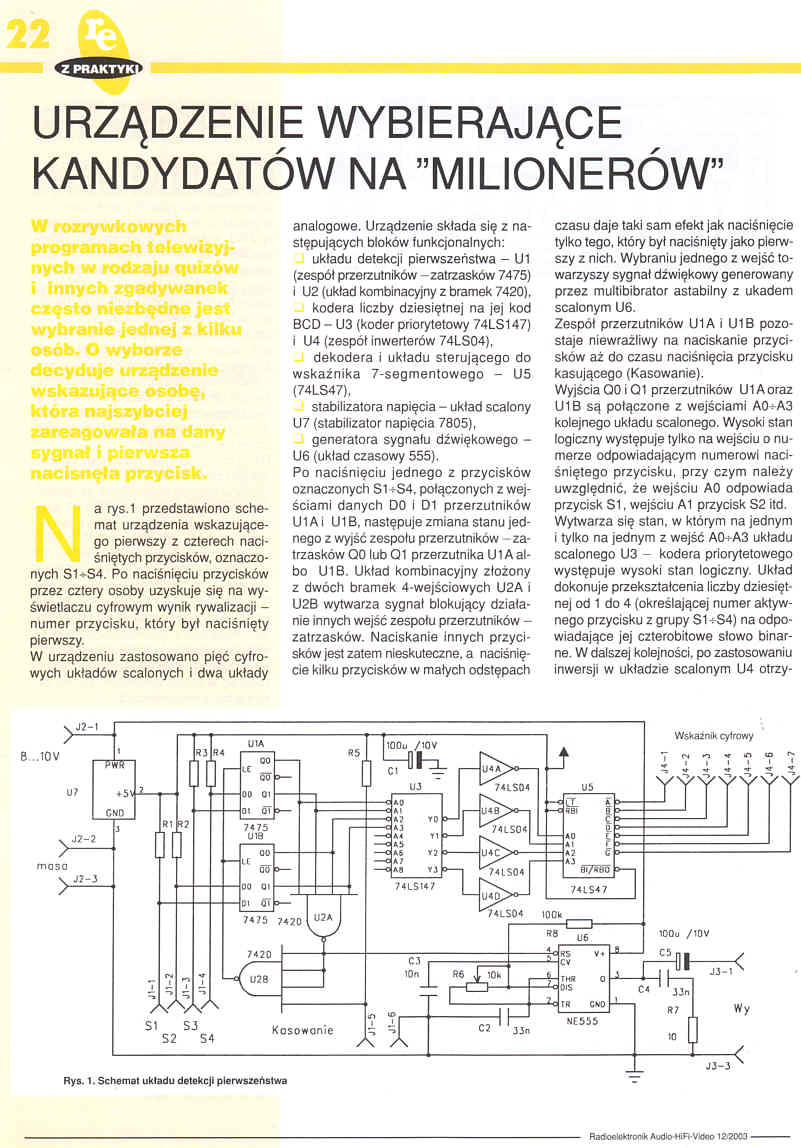 Artykuł: [Strona 20] [Strona 21] - Urządzenie wybierające kandydatów na "milionerów" (22)