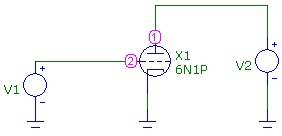Bardzo przydatnym narzędziem do doboru wartości kluczowych elementów wzmacniacza jest oprogramowanie do symulacji układów elektronicznych. Mimo, że lampy są we współczesnej szeroko rozumianej elektronice elementami łagodnie rzecz ujmując przestarzałymi, ich modele można znaleźć w bibliotekach praktycznie wszystkich znanych narzędzi do komputerowej symulacji. Na rysunku poniżej przedstawiony jest schemat układu umożliwiającego wyznaczenie rodziny charakterystyk anodowych lampy 6N1P.