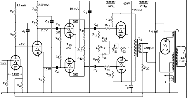 Moją uwagę przyciągnęły pośrednio żarzone podwójne triody mocy 6AS7, stosowane niegdyś głównie w układach zasilania, ale również świetnie sprawujące się w roli lamp stopnia końcowego wzmacniaczy audio. Koszt lamp byłby znacznie mniejszy, jednak ze względu na niski współczynnik wzmocnienia napięciowego i w tym przypadku trzeba by zastosować kosztowne i trudno osiągalne transformatory międzystopniowe lub zastosować dwie lub więcej triod w połączeniu równoległym. Russ Sadd opisał na swoich stronach wzmacniacz push-pull z triodami 6AS7.