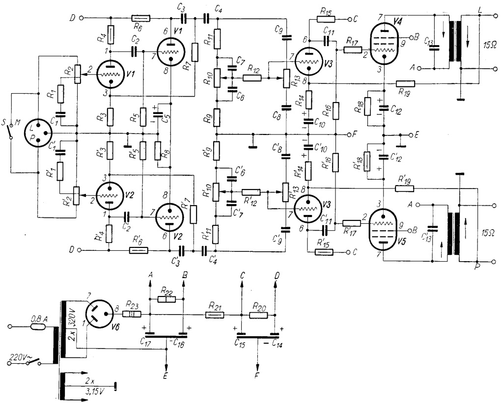 Wzmacniacz lampowy z tzw. średniej półki. Tradycyjne rozwiązanie układowe z nietradycyjną, rzadko stosowaną możliwością przełączania pomiędzy triodowym i pentodowym trybem pracy. Do zamieszczenia krótkiego opisu i nie tak krótkiego zestawu fotografii zachęciła mnie pojawiająca się w wielu miejscach informacja, że jest to wzmacniacz z polaryzacją automatyczną, który nie wymaga regulacji prądu spoczynkowego lamp końcowych. Otóż nie jest to prawdą i ostrzegam Użytkowników tego wzmacniacza przed niefrasobliwym podejściem do tego ważnego zagadnienia.