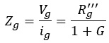 Mając już oporność wejściową lampy b, możemy obliczyć jej napięcie wejściowe. Łatwo ustalić to pomagając sobie rys. 8. Napięcie anodowe z lampy a dochodzi na siatkę lampy b poprzez opór R''g. Oporność wejściowa lampy b składa się z R''g i Zg równolegle, co wyniesie: