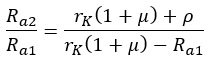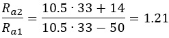 Na przykład Ra1=50KΩ, opór wewnętrzny lampy ρ=14KΩ, rK=10.5KΩ i współczynnik amplifikacji µ=32, otrzymamy