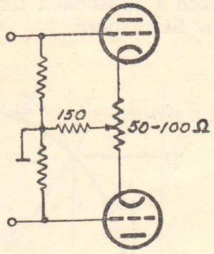 W pracy push-pull'a wiele zależy od wybalansowania układu. Przede wszystkim należy dbać o to, aby prądy spoczynku obu lamp były równe. Najlepiej do tego użyć lamp identycznych, ale, ponieważ jest to dość uciążliwe, stosuje się często opór nastawialny w katodach (rys. 11), za pomocą którego wyrównujemy prądy anodowe.