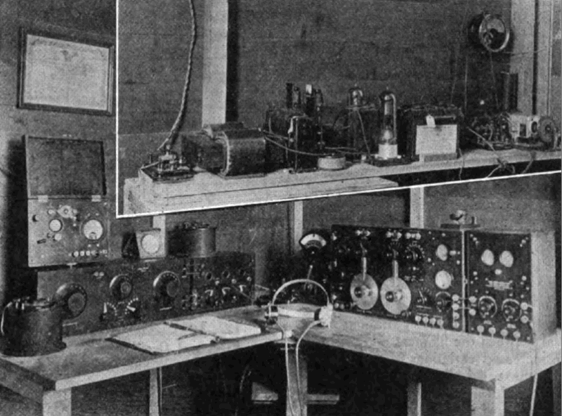 Stowarzyszenie CW w Kaliforni (6ALE). Górna część fotografii pokazuje aparaturę nadawczą, zaś dolna część fotografii aparaturę odbiorczą