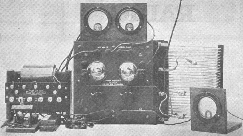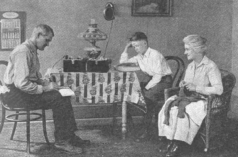 Fascynacja radiem zagląda pod strzechy. Zdjęcie "rodzinne" z San Francisco. Jest na nim m.in. Radio Magnavox i wzmacniacz tej samej firmy. Z opisu zdjęcia wynika, że rodzina nie tylko słucha radia ale i komunikuje się z nadawcą - niezłe nieprawdaż?