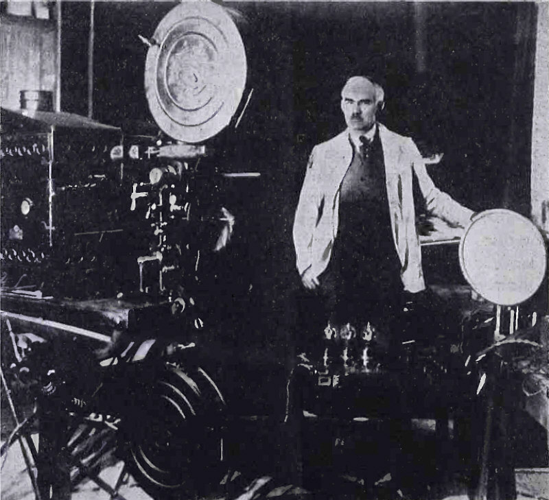 Dr. de Forest' demonstruje w swoim laboratorium urządzenie o nazwie Phonofilm.