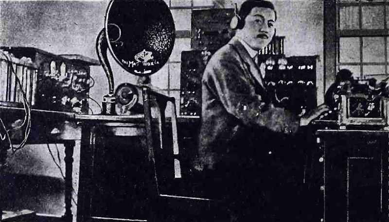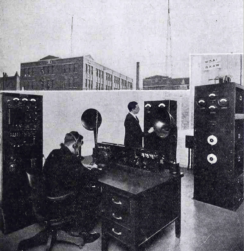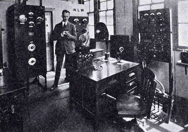 Powel Crosley, Jr., Prezydent Crosley Manufacturing Company przy 500-watowym nadajniku Western Electric w Cincinnati
