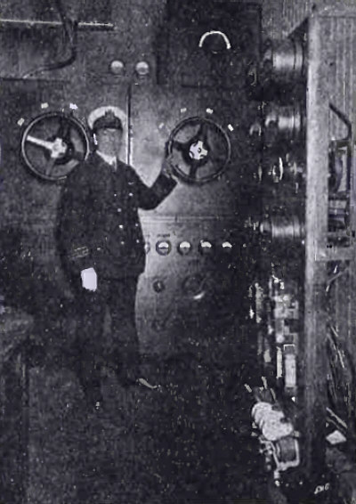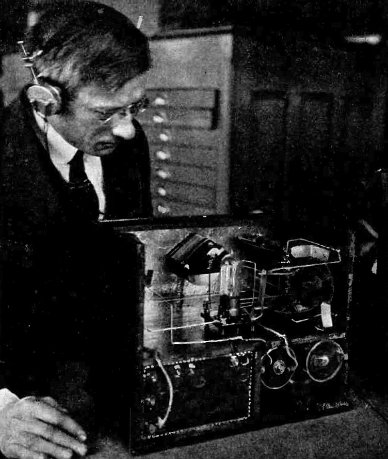 A. W. Tupper, Assistant Engineer Bureau of Lighthouses, przy urządzeniu odbiorczym.