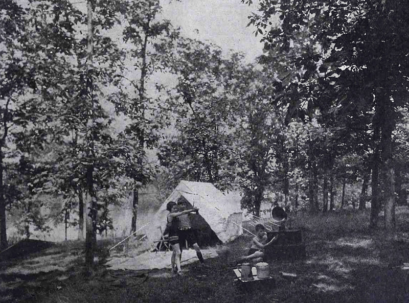Przenośny zestaw radiowy na letnim obozowisku.