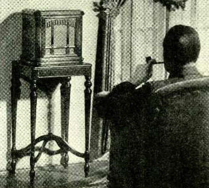 "Ta pięknie zaprojektowana obudowa harmonijnie pasuje do salonów muzycznych i artystycznych. Głośniki dynamiczne Jensen zostały przystosowane do pracy w urządzeniach zasilanych prądem zmiennym o napięciu 110 woltów, akumulatorem o napięciu 6 woltów, prądem stałym o wartości od 90 do 180 woltów dostarczanym przez wiele modeli zestawów radiowych itp. Czułość urządzenia jest taka sama w każdym przypadku..."