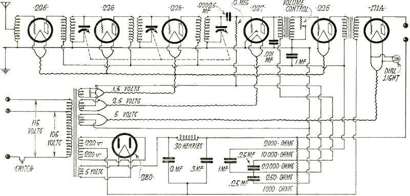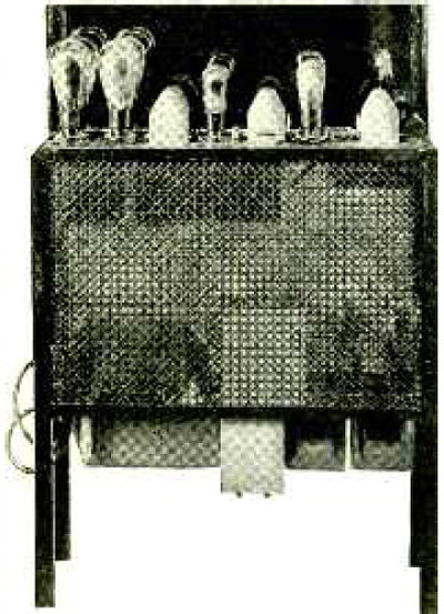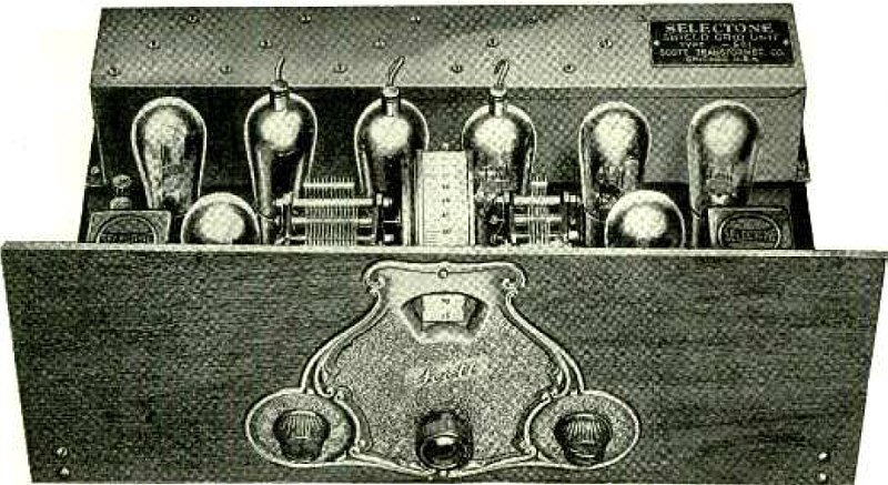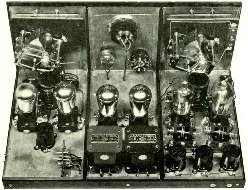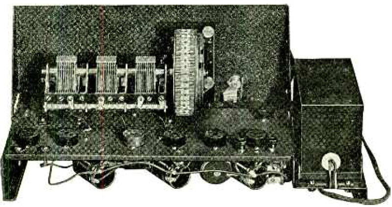Chassis odbiornika firmy Atwater Kent (zastosowano tu lampy z siatką ekranującą)