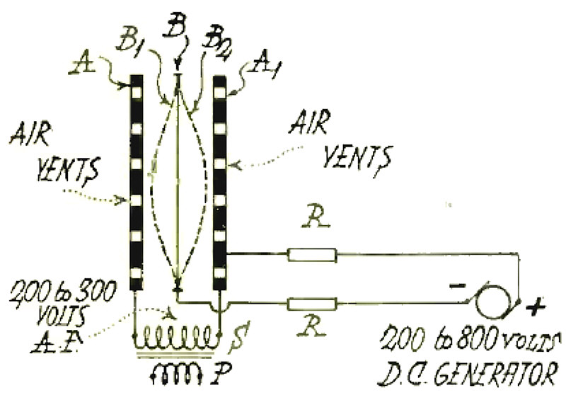 Reklama: Jedna z pierwszych znanych metod wypompowywania lamp elektronowych.