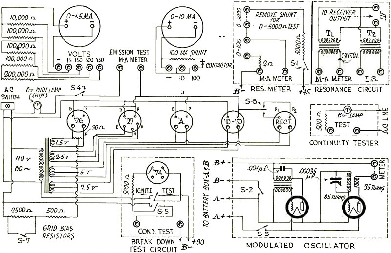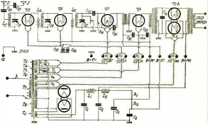 Schemat ideowy odbiornika krótkofalowego Marshall.