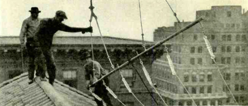 Montaż instalacji stacji WRNY na dachu hotelu Roosevelt w Nowym Jorku.