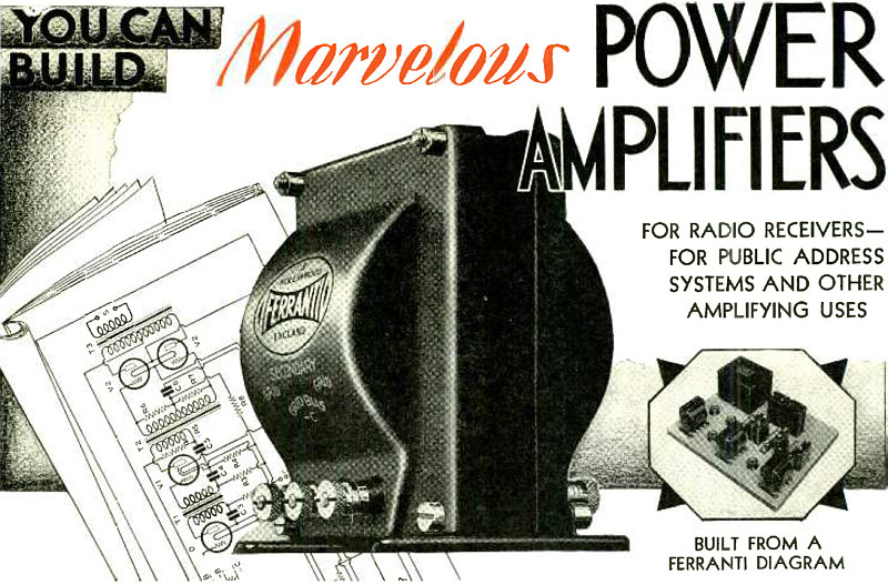 Reklama firmy Ferranti dotycząca wzmacniaczy mocy do radioodbiorników.