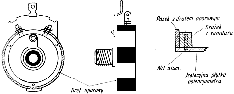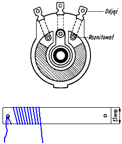 Oporność potencjometru zależy od średnicy i rodzaju zastosowanego drutu oporowego oraz gęstości nawinięcia. Dobrze jest po całkowitym wykonaniu zewnętrzną drogę uzwojenia zalać lakierem izolacyjnym.