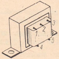 W egzemplarzu modelowym zastosowano znajdujący się w handlu transformator zasilający od odbiornika "Tatry" lub "Bolero". Transformator ten przystosowano do naszych potrzeb przez usunięcie 375 zwojów uzwojenia. Zabieg ten nie jest trudny, ponieważ rdzeń transformatora można stosunkowo łato rozbierać (skręcony śrubami). Po uwolnieniu korpusu odwijamy znajdujące się na wierzchu uzwojenie żarzenia (32 zwoje grubego drutu) - ostrożnie i delikatnie, aby nie zniszczyć emalii izolacyjnej. Następnie odwijamy pięć warstw(po 75 zwojów każda) cienkiego uzwojenia wtórnego. Odcinamy niepotrzebny drut wyprowadzamy uprzednio zdjętą przekładkę izolacyjną. Następnie nawijamy z powrotem uzwojenie żarzenia . przytwierdzamy je i przystępujemy do składania rdzenia. Cała ta operacja jest stosunkowo prosta i nie powinna nastręczać nikomu specjalnych trudności. Złożony rdzeń skręcamy śrubami.